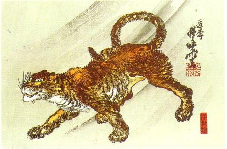 Utagawa Toyoharu - Interior and Winter Landscape Koson - Birds in Bamboo Tree Kawanabe Kyosai - Tiger